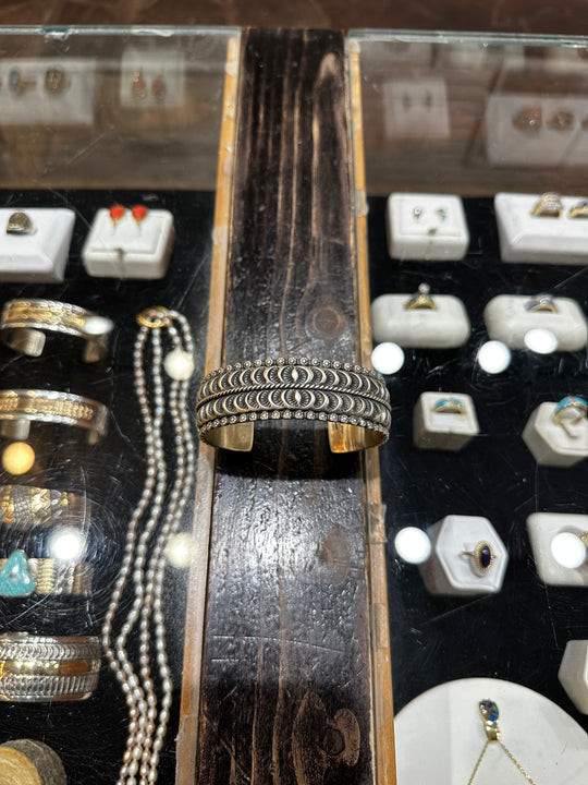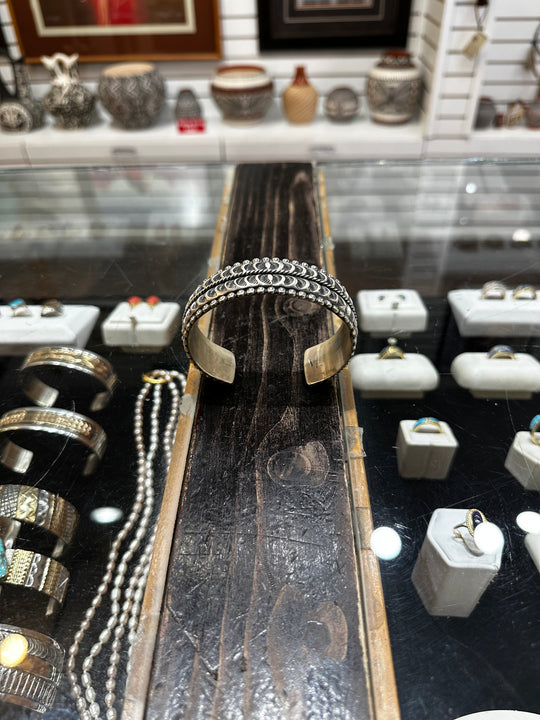 Handcrafted out of Sterling Silver, this is a Cuff Bracelet by Marc Antia of Apache.