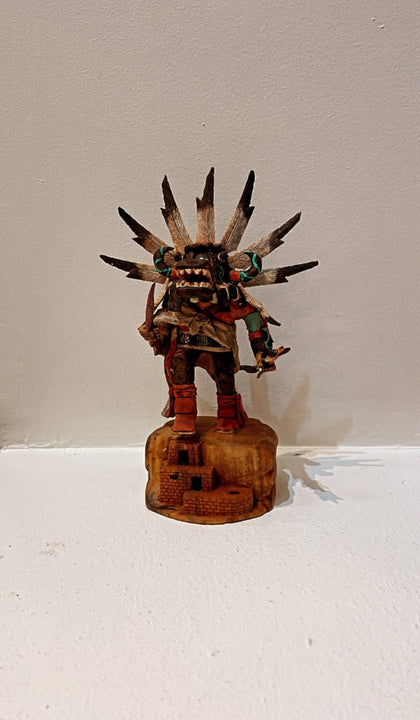 Hand-carved out of cottonwood and hand-dyed with natural pigments, this is a "Black Ogre" Kachina Doll by Milton Howard of Hopi. Dimensions 11” x...