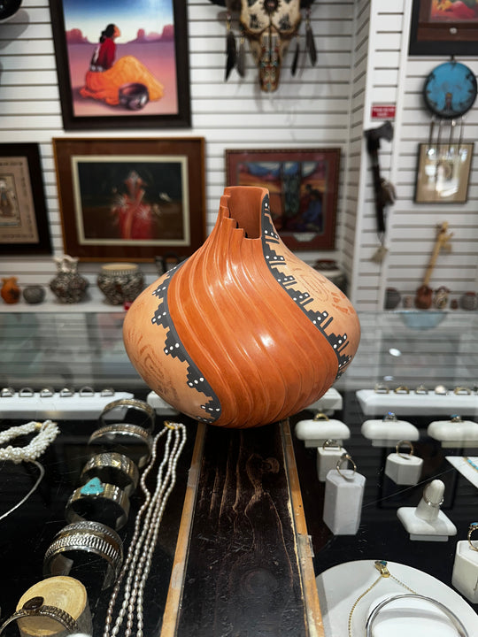 Handcrafted out of natural earth clay and hand-painted with natural dyes, this is Handcrafted Pottery By Felicia Fragua. Dimensions 10" x 8"
