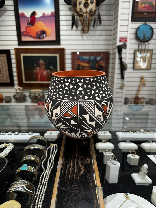 Handcrafted out of natural earth clay and hand-painted with natural dyes, this is Handcrafted Pottery By Linda Concho of Acoma. Dimensions 7" x...