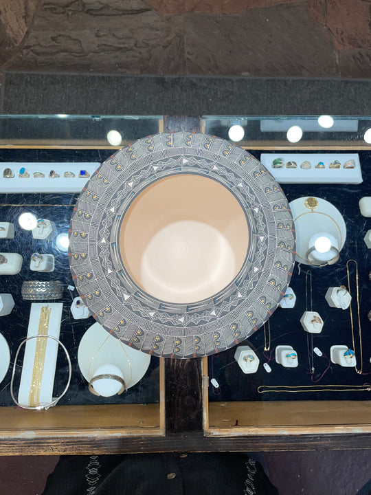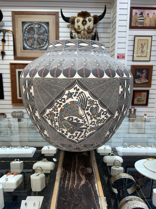 Hand-coiled, hand-fired, and hand-painted with natural earth clay and natural dyes, this is Handcrafted Pottery by M. Tenorio of Santa Ana Pueblo....