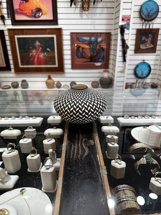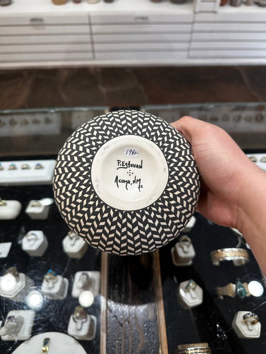 Handcrafted out of natural earth clay and hand-painted with natural pigments, this is Handcrafted Pottery by P. Estevan. Dimensions 4"x 6"